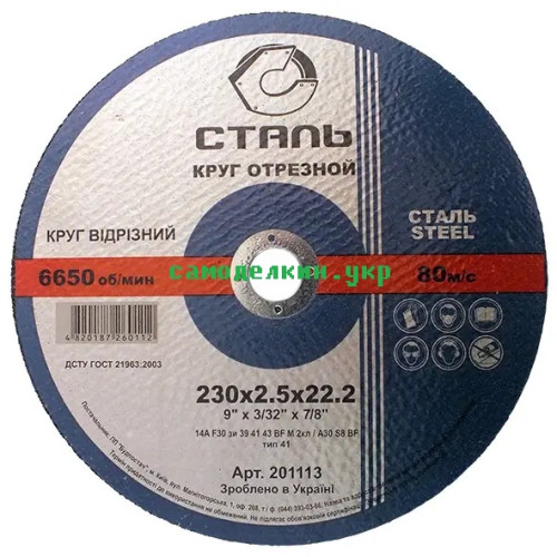 Диск отрезной по металлу СТАЛЬ (арт. 201113) 230х2,5х22,2 (1982)