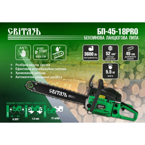 Цепная бензопила СВИТЯЗЬ БП 45-18 PRO, бензопила, купить бензопилу СВИТЯЗЬ, бензопила Украина
