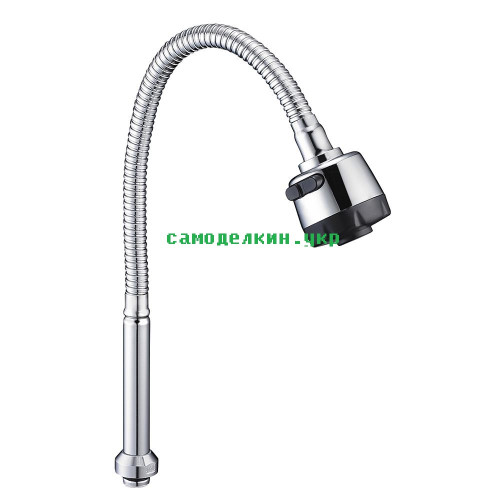 Представленный здесь гибкий (рефлекторный) излив для кухонного смесителя изготовлен из высококачественной нержавеющей стали с покрытием блестящего цвета и имеет стандартный вынос 21 см для высоты 35 см. Подходит для смесителей Solone серии LOP, KAD и KAK. Модель оборудуется аэратором-лейкой с 2 режимами струи. Гибкая конструкция излива позволяет установить произвольную высоту и вынос.