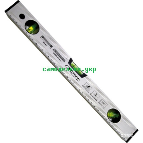 Спиртовой уровень СТАЛЬ из высококачественного алюминиевого сплава с 3-мя прозрачными измерительными капсулами на 45°, 90° и 180°. Изделие оснащено противоударными наконечниками и возможностью нанесения линейки. Погрешность капсул составляет всго +- 0.5 мм/м.