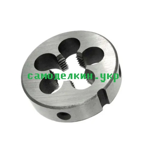 Плашка використовується при нанесенні зовнішнього різьблення на металеву деталь, виконана з високоякісної сталі.