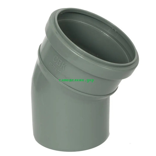 Коліно діаметр 110 мм, кут 22 градусів СВК для внутрішньої каналізації. СВК – це торгова марка каналізаційних труб та фітингів класу економ. Продукція призначена для обладнання систем водовідведення із максимальною температурою стічної рідини 60 град. та короткочасної (до 1 хв.) 95 град., а також для вентиляції та для внутрішніх зливових стоків. Також продукція оснащена гумами ущільнювачів. ПВХ продукція виробляють із непластифікованого полівінілхлориду як монолітні (одношарові), так і тришарові. Монтувати конструкцію дома досить просто, а з'єднання виходить герметичним. При демонтажі або заміні деталь усувається також швидко. Відмінні техніко-економічні характеристики показали ПВХ каналізаційні труби та фітинги з діаметрами 110-200 мм, що зробило їх дуже популярним у приватному будівництві (дачі, невеликі будови). Характеристики: виготовлені із поліпропілену, призначені для монтажу каналізації, а саме для внутрішніх каналізаційних мереж.