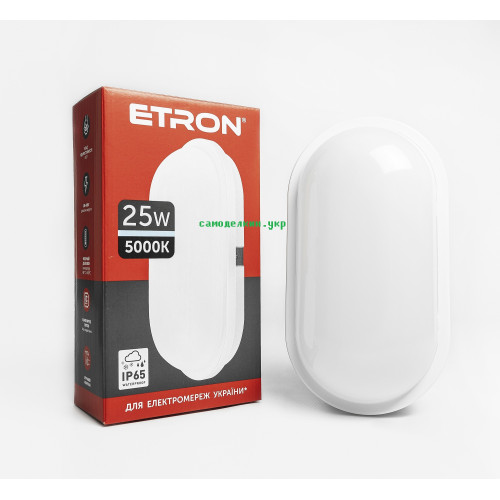 Тип: Настенные светильники Потолочные светильникиТип источника света: Светодиодная LED (интегрированный)Цвет: БелыйМощность, Вт: 25 ВтЭквивалент мощности лампы накаливания: 250 ВтМатериал основы: ПластикЦветовая температура: 5000КСветовой поток: 1950 ЛмФорма: ОвальнаяКласс защиты IP: IP65Размеры: 271*146*76 ммУгол рассеивания: 140°Рабочий диапазон напряжения, В: 185-245Страна-производитель товара: КитайСтрана регистрации бренда: УкраинаПроизводитель: ЭТРОНГарантия: 24 месяца