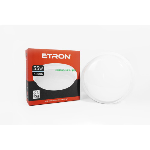 Тип: Настенные светильники Потолочные светильникиТип источника света: Светодиодная LED (интегрированный)Цвет: БелыйМощность, Вт: 35 ВтЭквивалент мощности лампы накаливания: 350 ВтМатериал основы: ПластикЦветовая температура: 5000КСветовой поток: 2970 ЛмФорма: КруглаяКласс защиты IP: IP65Размеры: 221×72 ммУгол рассеивания: 140°Рабочий диапазон напряжения, В: 185-245Страна-производитель товара: КитайСтрана регистрации бренда: УкраинаПроизводитель: ЭТРОНГарантия: 24 месяца