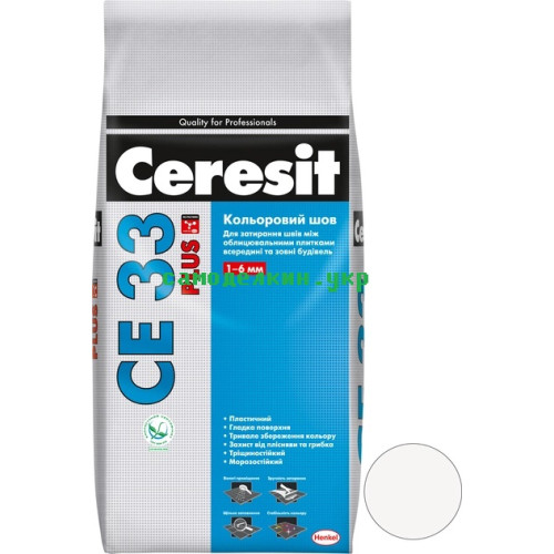 Смесь Ceresit CE 33 PLUS предназначена для заполнения швов керамических, стеклянных облицовочных плиток, а также облицовочных плиток из искусственного и натурального камня, в том числе мрамора, уложенных на прочные, устойчивые к деформации основания, на горизонтальных и вертикальных поверхностях внутри и снаружи сооружений, эксплуатируемых в обычной среде.
